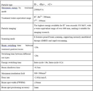 (I) Key Technical Specifications of the Light Ion Therapy Device